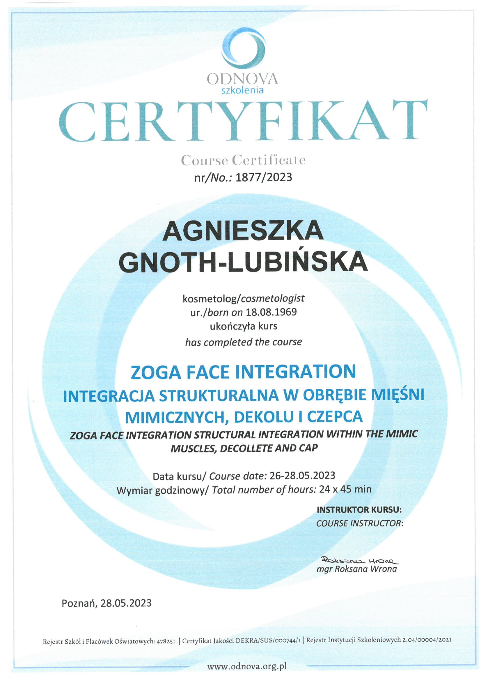 Kosmetologia jest moim drugim zawodem. Po latach pracy w korporacjach zajmuję się tym, co naprawdę mnie cieszy, przywracam Kobietom pewność siebie opartą na młodym wyglądzie. W gabinecie udowadniam, że po pięćdziesiątce też możemy być piękne. Moją pasją jest dbanie o skórę dojrzałych Kobiet, które chcą czuć się pięknie i pewnie w każdej sytuacji. Oczywiście moja pasja to również kwalifikacje.