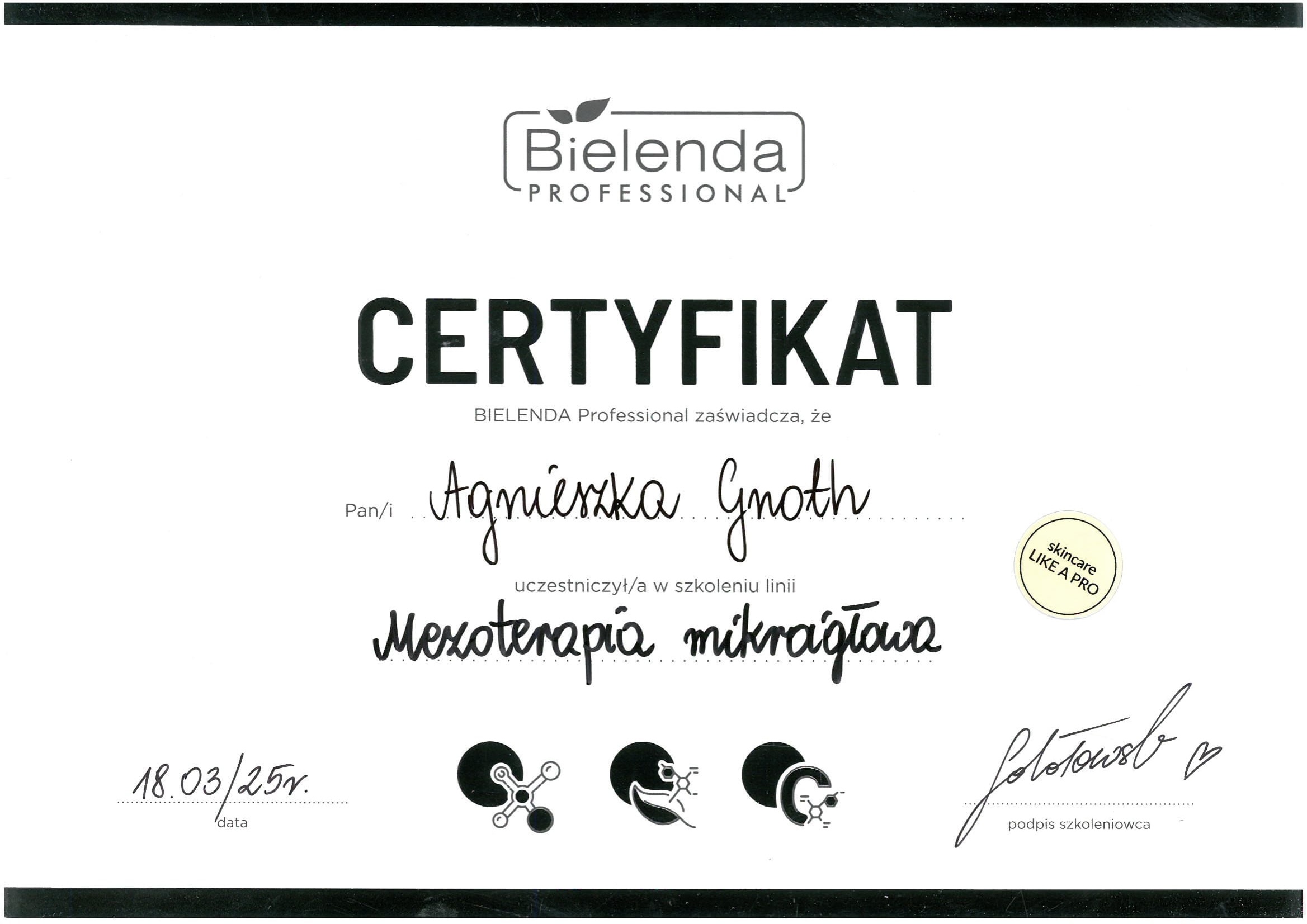 Jestem certyfikowanym szkoleniowcem marki LARENS Professional Line, posiadam status Gabinetu Partnerskiego SkinArte oraz status Gabinet Partner Bielenda Professional. Jako terapeuta twarzy i refleksolog pracuję również z pacjentami, więc będziesz w najlepszych rękach. Wykonałam tysiące zabiegów, zdobywając wiedzę i doświadczenie, potwierdzone certyfikatami. Współpracuję z kilkoma markami, aby precyzyjnie odczytać potrzeby skóry każdej Klientki. Jestem na bieżąco z nowościami rynkowymi. Interesuje mnie szybki, widoczny efekt, ale też trwałość rezultatu w długim okresie czasu.